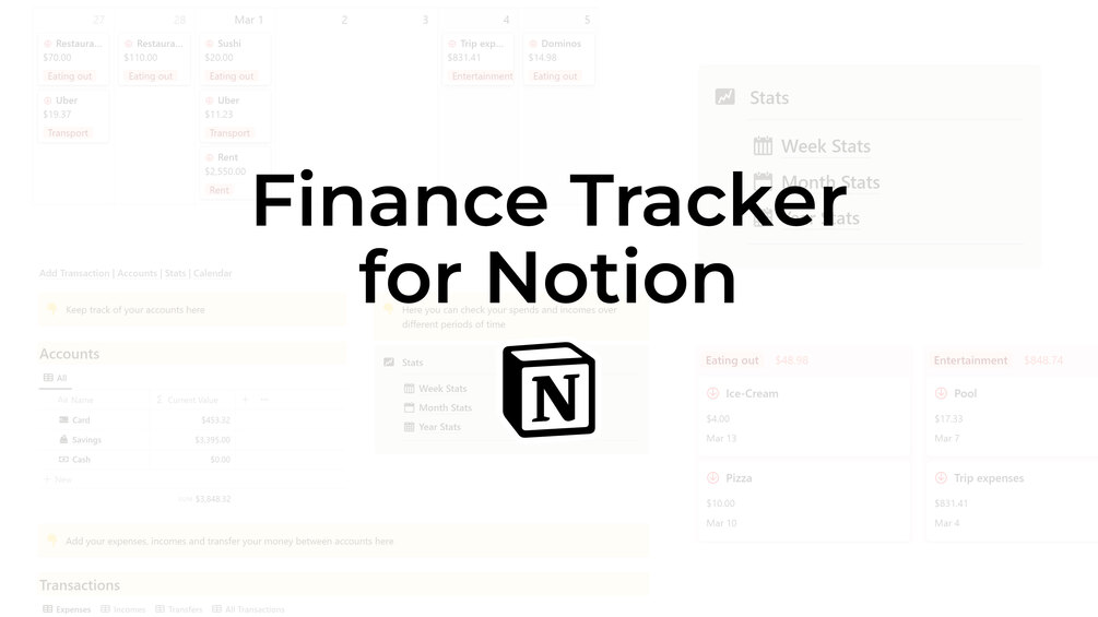 Stop relying on your fragile brain that forgets a lot. Replace it with a finance tracker built entirely in Notion and manage all the money in one place.